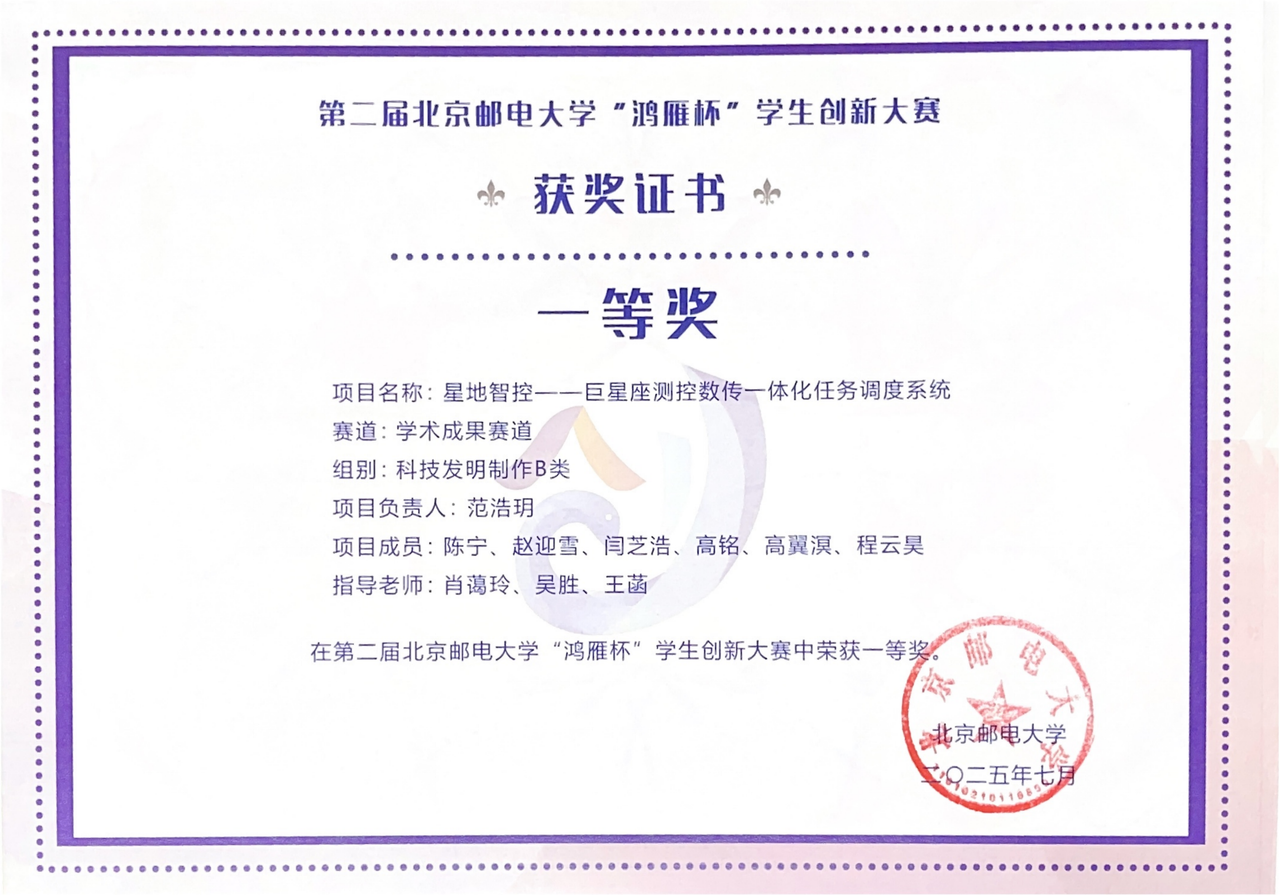 🥇 第二届北京邮电大学“鸿雁杯”学生创新大赛:主赛道研究生组一等奖